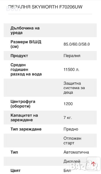 ПЕРАЛНЯ SKYWORTH F70206UW