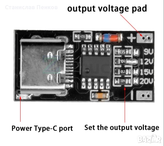 PD2.0 PD3.0 тип C към DC от 9 до 20V