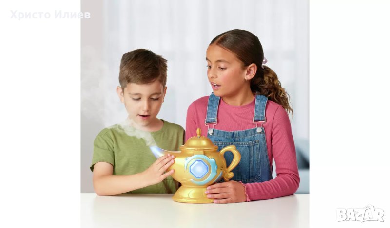 Вътре в тази мистериозна златна магическа лампа има розово Genie Mixie, което чака да бъде пуснато! Време е вашето дете да изпълни вълшебните стъпки и да направи истинска магия да се случи от тази богата на функции магическа замъгляваща лампа Genie с над 60 различни светлини, звуци и реакции! Първо трябва да събудят Джина и да създадат магически пръстен, който е скрит вътре. Докато вашето дете търка лампата, от чучура се появява истинска магическа мъгла и нейният скъпоценен камък светва! Вашето дете може да играе, използвайки 3 различни режима на джина - режим на изпълнение на желания, режим на игра и режим на чат.