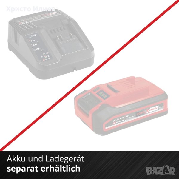 Предлага се без батерия и зарядно. Те се продават отделно, например като практичен стартов комплект. За най-добри резултати се препоръчват PXC батерии от 2,5 Ah Plus или по-големи