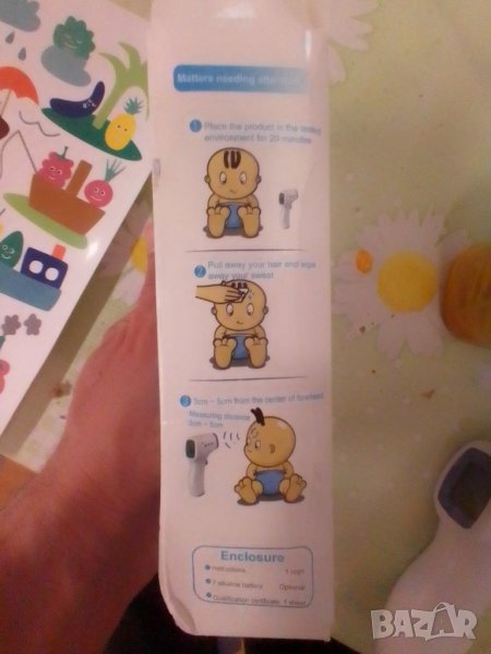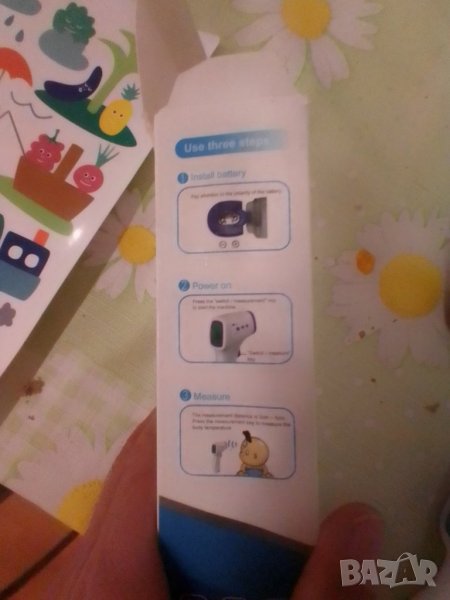 Продавам нов безконтактен термометър. Измерва точно, проверено е. Много е удобен за проверка на температурата на бебета и малки деца.