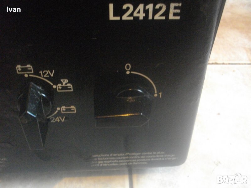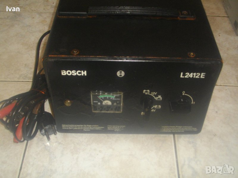 ОПИСАНИЕ на акумулаторно зарядно 24 волта и 12 волта Бош - цена 259 лв. Оригинално немско производство, старо качество, от стария материал. Захабен външен вид и ОТЛИЧНО техническо/работно състояние. Зарядното е профилактирано от техническо лице, рабити и зарежда изключително добре. Марка и модел - BOSCH L2412E. Производител -Robert Bosch Geschalfsberechesevan. Производство на зарядното - Stuttgart - Germany. Характеристики вписани на маркировките при 12 волта и при 24 волта зареждане - 220 V 450 W , T 2,5A