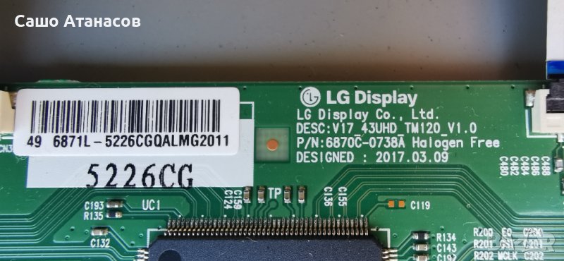 T-Con Board: V17_43UHD_TM120_V1.0 / 6870C-0738A / 6871L-5526CG - 60лв.