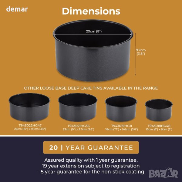 Този съд за печене от колекцията Precision Plus на Tower разполага с превъзходно незалепващо покритие Black Diamond, което е 7 пъти по-здраво от типичните покрития за съдове за печене, осигурявайки освобождаване без усилие и лесно почистване. Неговата издръжлива конструкция се състои от здрава, дебела алуминизирана стомана, устойчива на изкривяване при високи температури и ежедневно износване. Съдовете за печене не съдържат BPA и PFOA и отговарят на всички стандарти за готвене. Неговият уникален дизайн на хлабава основа позволява лесно отстраняване на тортата, изскачайки в едно спретнато парче. Подходящ за фурна до 260°C/500°F, той осигурява бързо и равномерно разпределение на топлината, идеален за печене. Освен това е подходящо за използване в хладилник, фризер и съдомиялна машина, въпреки че се препоръчва миене на ръка, за да се запази покритието.