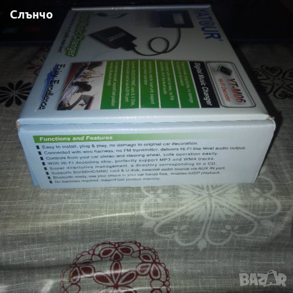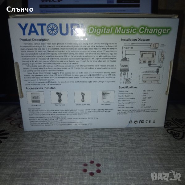 Digital Music Changer YT-M06 е революционен заместител на CD чейнджъра в превозното средство. Системата е много проста за свързване и работа. Доставя CD-качество на звука директно към вашата аудио система чрез чейнджъра порта на CD-то, без загуба на качество,за разлика от касетка или FM трансмитър. Yatour Digital Music Changer поддържа пряк контрол от радиото, контрола върху волана остава напълно функционален. Благодарение на вградения USB порт и слот за SD карта, потребителят се нуждае само от USB флашка или SD / SDHC / MMC карта с памет (не са включени в комплекта). Благодарение на AUX IN (3,5 "жак) входа можете да свържете други аудио устройства.