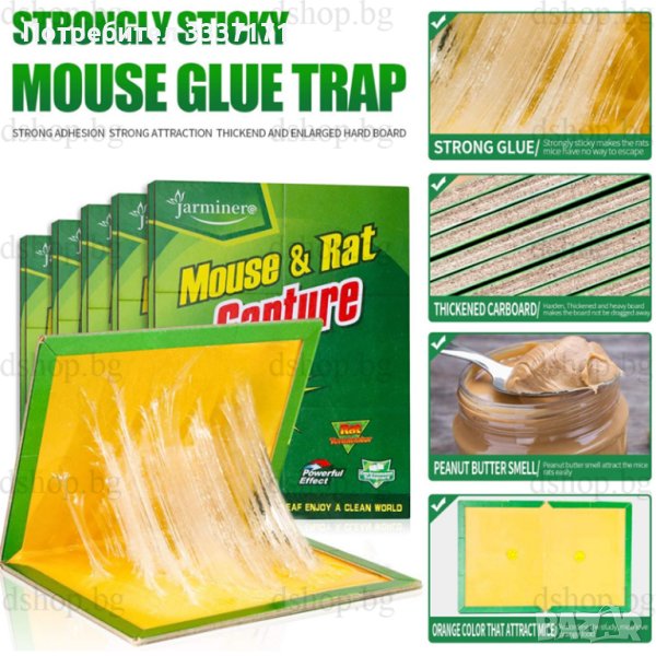 Лепкавият капан за мишки и плъхове е идеално решение за всяко място, където не могат да се използват химически отрови или друг тип улавящи средства за вредители. Той работи добре и на места, където има бягащи или пълзящи насекоми. За още по-добри резултати използвайте и други примамки под формата на суха кора от хляб на мишките или парче по-ароматна храна за плъховете. Отървете се от гризачите веднъж за винаги с помоща на лепкавия капан.
