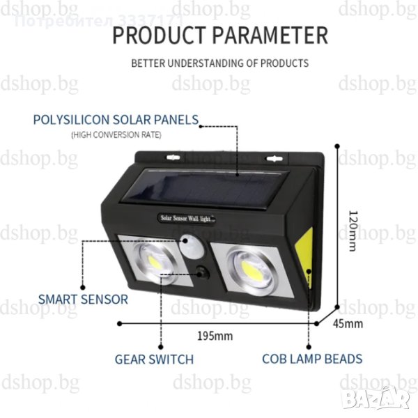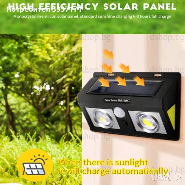 Моделът е с водоустойчива конструкция и трябва само да се монтира на слъчево място, за да може соларния панел да се зареди.