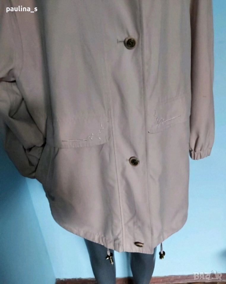 2️⃣. Винтидж / Гигант / Копринена парка тип манто или шлифер "Modern Classic"/ 48EU. Цената е крайна, без пазарлъци 29,99лв / 15 евро. Винтидж / Много красива копринена парка / шлифер, за преходно време. Изработката е перфектна и на ниво, дрехата е детайлирана, копчета с лого, бродерии, цип, джобовете са под платката, долу ширината се регулира с шнур. Перфектна дреха, като нова.
