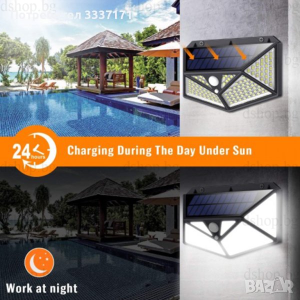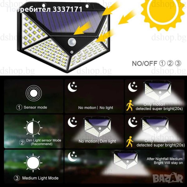 100 LED с висока осветителна мощност с 3 интелигентни режима на работа