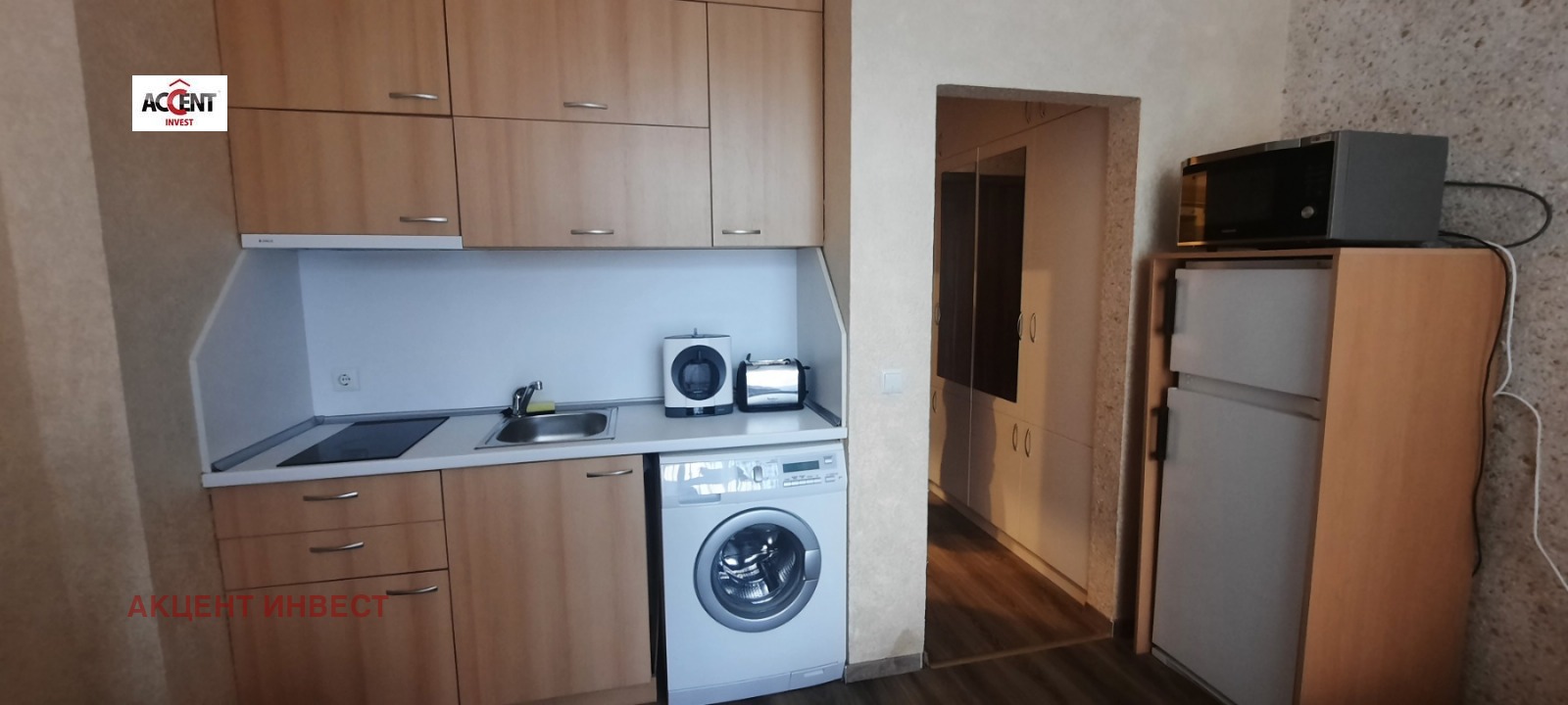 Апартаментът е разположен на висок първи етаж и се състои от коридор, комбинирн санитарен възел и една стая обособена на зони за сън и почивка с излаз на тераса.