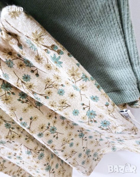 Прекрасна рокля от Tong в нежно зелен рипс в горна част, съчетан със златиста гама флорални мотиви в долната... Красива и топла ❤️