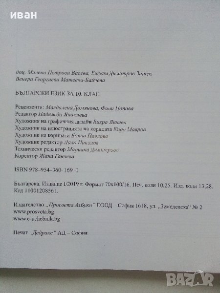 Български език за 10 клас.- М.Васева,Е.Зашев,В.Матеева-Байчева 2019г. → Обява 43732029