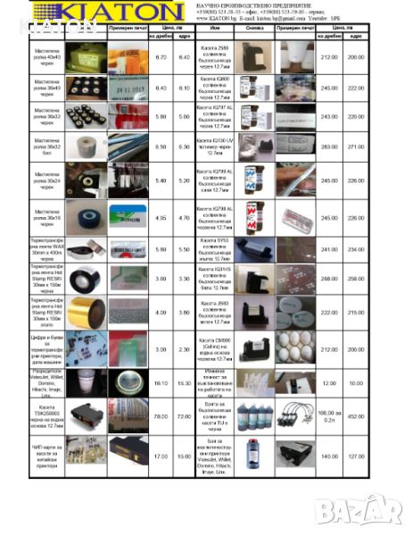 1 касета (повече от 90 вида по адхезия и цвят) за 1,5 милиона дата (0,012 ст).