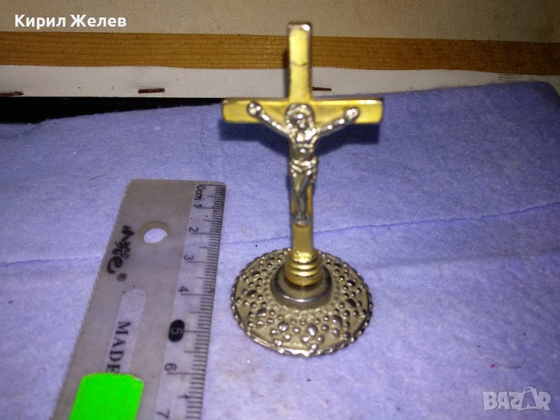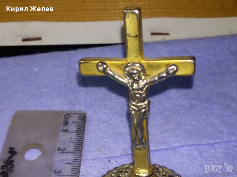 Стара ПОЗЛАТЕНО НАСТОЛНО РАЗПЯТИЕ КРЪСТ Много КРАСИВ МЕТАЛЕН 41358 → Обява 43738679