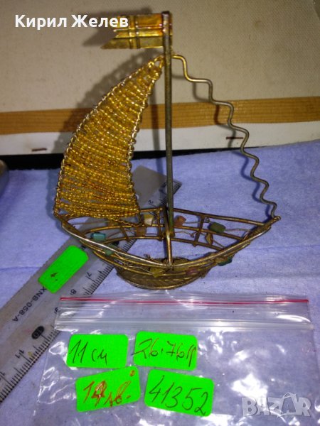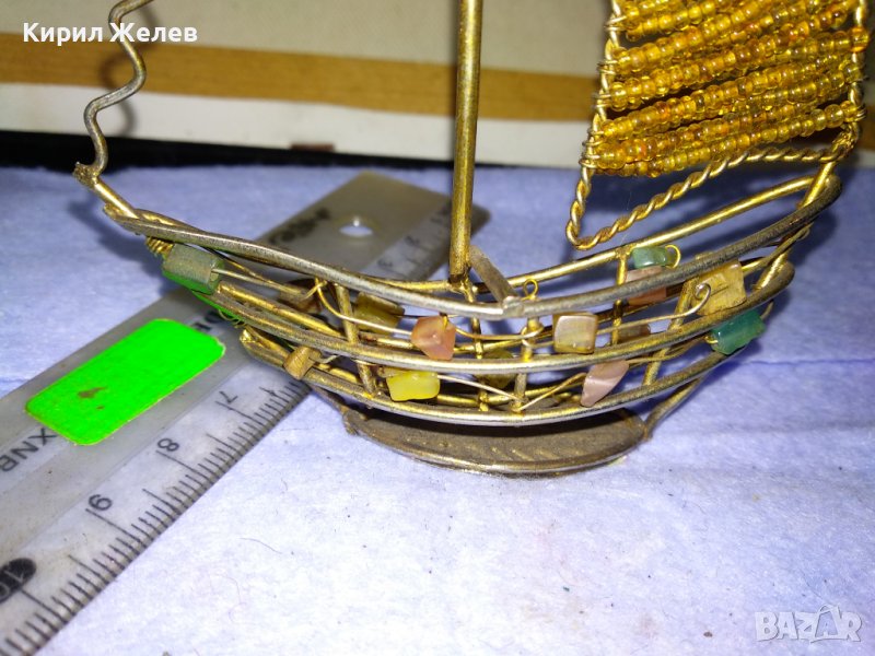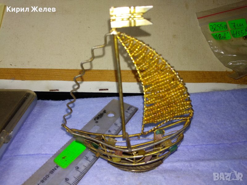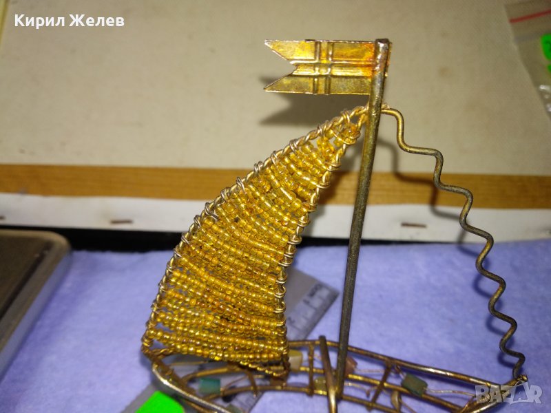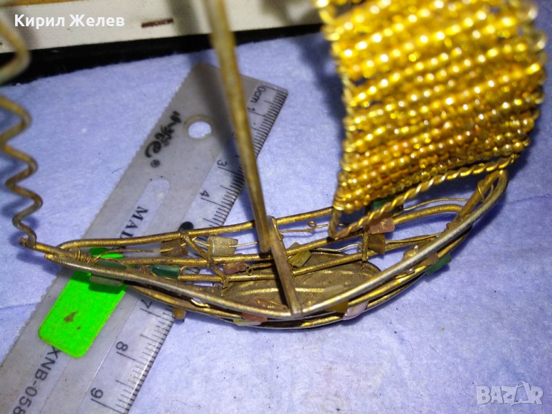 Старо ЗЛАТИСТО МЕТАЛНО РЪЧНА РЕТРО АРТ ИЗРАБОТКА КОРАБЧЕ ВЕТРОХОД с ПОЛУСКЪПОЦЕННИ КАМЪЧЕТА 41352