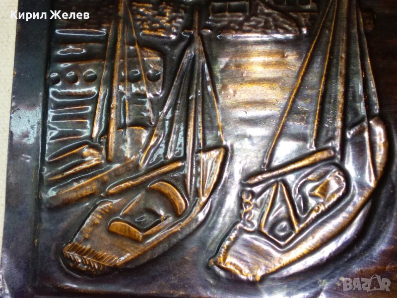 БУРГАС - Л. ЙОРДАНОВА Стара АВТОРСКА МЕДНА ГРАВЮРА ЛОДКИ МОРЕ ХУДОЖЕСТВЕНА РЪЧНА ИЗРАБОТКА 41554
