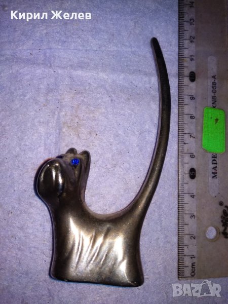 СИМПАТИЧНО МЕТАЛНО ПОСРЕБРЕНО КУЧЕНЦЕ ДЕКОРАТИВНА ФИГУРКА с КРИСТАЛЧЕТА за ОЧИ 38417