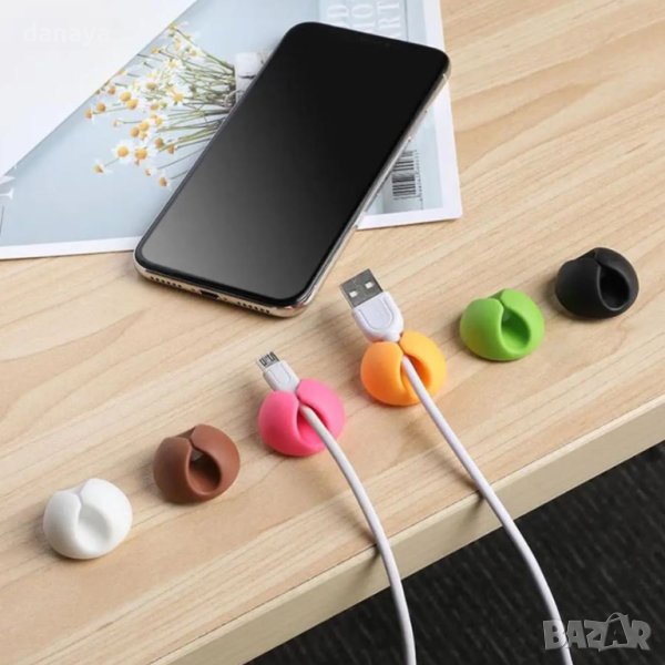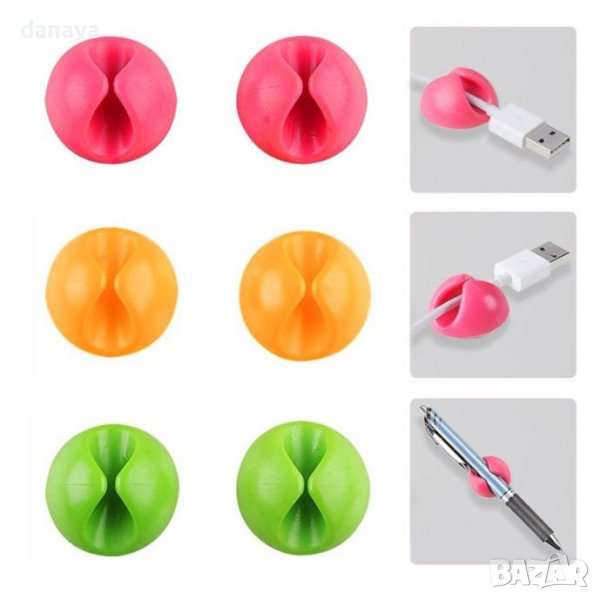 Комплект от 6 броя държачи за кабели, с които лесно ще организирате безпорядъка зад бюрото или кухнята. Много практично решение за непрекъснато заплетени кабели. Държачит са идеални за организиране на захранващи кабели, кабели за зареждане, USB кабели, зарядни устройства, аудио кабели, кабелни слушалки и други. Кабелните щипки са незабележимо, но много практично решение, което ще реши проблема със заплетените кабели. Държачите се закрепват с помощта на самозалепваща лепенка на гърба на всеки аксесоар.