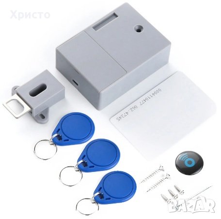 Безключова електронна ключалка, отключва се с чип от разстояние, или за отключването е необходимо да се доближат 2 чипа, захранва се с 2бр АА батерии, батериите издържат повече от една година, при слаби батерии има предупреждение със звуков сигнал. По всяко едно време чиповете могат да се изтриват или да се програмират наново ако се наложи, например при загубване или открадване на чип. Може да се монтира навсякъде където е необходимо и където не е желател-но много хора да имат достъп. Например, отделни чекмеджета, кутии за оръжия или за бижута, кутии за дарения, шкафове със лични вещи, гардероби със скъпи дрехи, там където съхранявате документи . И най-хубавото е че не се използва стандартната видима и уязвима ключалка, която може да се отключи с подправен ключ или да се разбие. Ключалката е комплект с четири безконтактни ключа / 1бр. карта + 3бр ключа/ и скрепителни винтове за монтаж на ключалката. В комплекта не са включени батерии. * На всички желаещи от гр.Ст. За-гора предлагаме и монтаж. Потребителско описание на Български език.