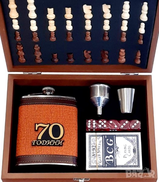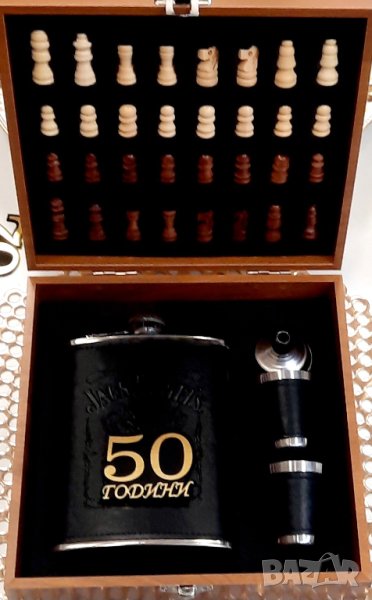Стилен, подаръчен комплект - манерка с шах и аксесоари за юбилей 50 години или кръгла годишнина - 60, 70 или 80 год.