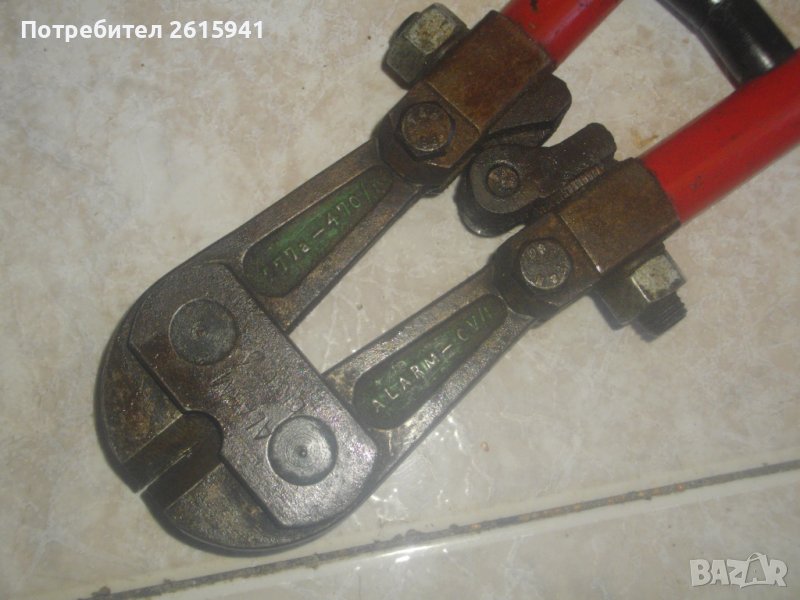 ОПИСАНИЕ на масивна ръчна ножица 570 мм за рязане арматура - цена 159 лв. Професионална, старо качество, от стария материал. Немска оригинална. От масивно, плътно желязо. Марка PATFIELD. Производство - Germany Дължина цялостна 470 мм. Хром.-ванадиум покритие изцяло. Маркировка CHROM-VANADIUM. Реже 60 кг/кв.м - така е маркирано. Рязане арматура - ф 5 мм. Дръжки - тръби ф 15мм. Отлично визуално ,работно и техническо механично състояние. Без забележки. Остриета челюсти - без никакви наранявания. Тегло а инструмента - 1,5 кг.