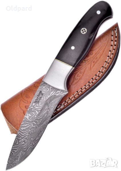 Общата дължина на ножа е 21,6 см. Острие от кована дамаска стомана. Дължина на острието - 10,2 см. Дръжката е от биволски рог. Подложка от неръждаема стомана. Монтаж на острието - Full Tang. Калъф за класически кафяв кожен колан.