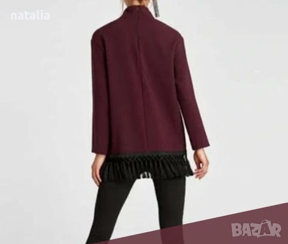 Блуза Zara Burgundy с висока яка и пискюли,