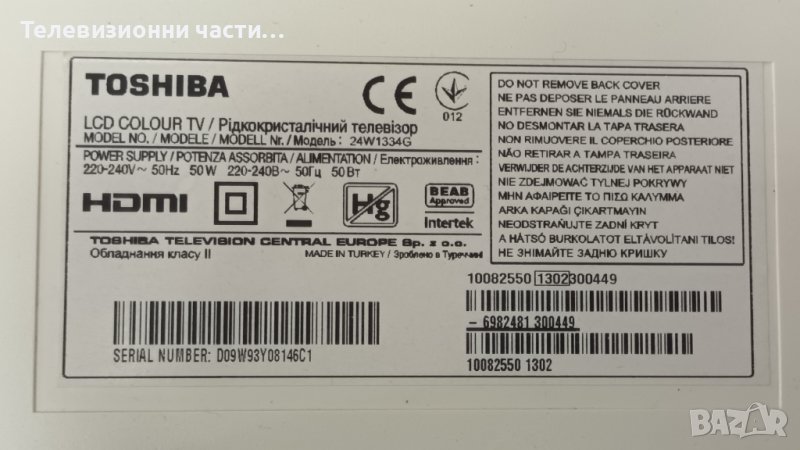 Toshiba 24W1334G със счупен екран-17IPS61-2/17MB95S-1/17CON07-3/V236B1-LE1-TREF5/V236BJ1-LE1 Rev.C2 → Обява 43746133