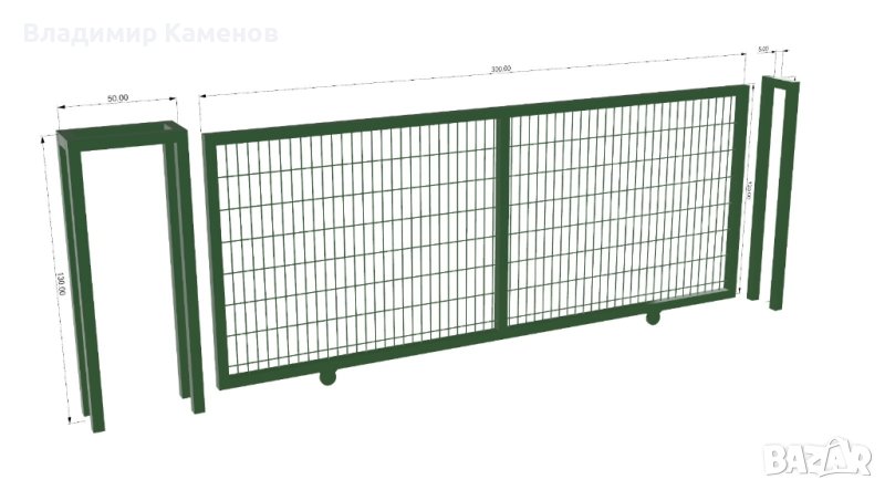оградни пана с дебелина 4 мм, отвори 5 х 15 см и две подсилващи пръчки на сгъвката, осигуряващи максимална здравина и устойчивост. Всички пана са с ширина 2.5 м, горещо поцинковани и прахово боядисани за дългогодишна защита от корозия.