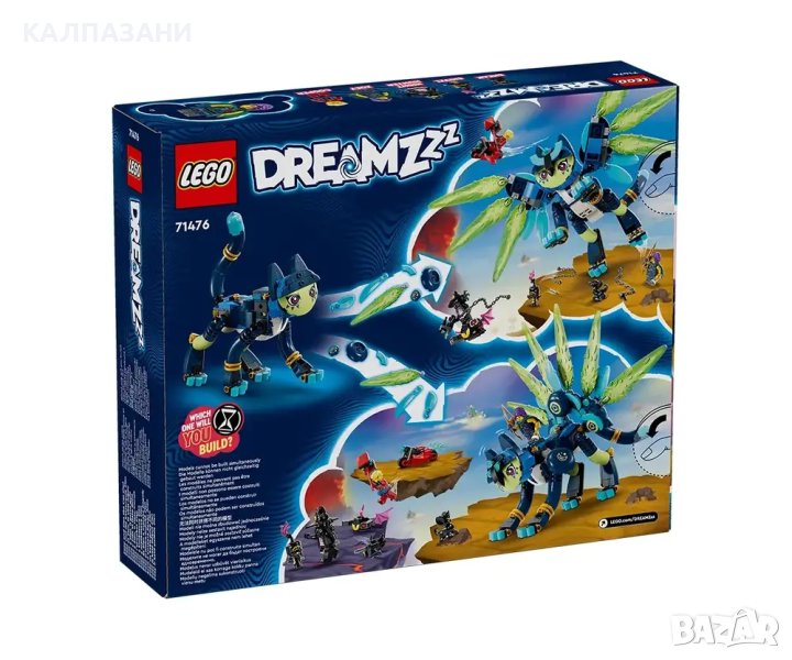 - Трансформираща се играчка с животни – позволете на деца над 9 години да дадат свобода на въображението си със строителния комплект LEGO® DREAMZzz™ Зоуи и котката-бухал Зиан, който предлага 2 вълнуващи опции за построяване