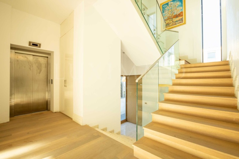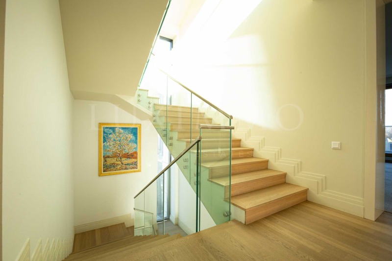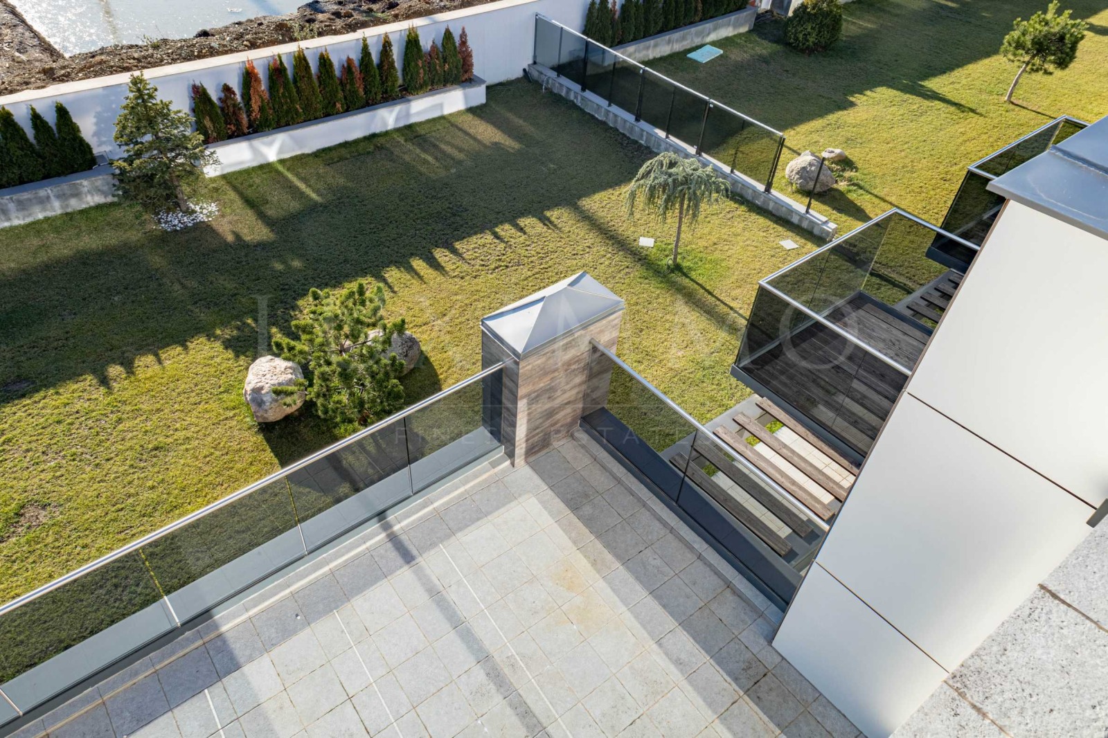 Имотът с РЗП от 611.71 кв.м е на три етажа плюс един последен покривен с панорамна тераса с площ от 100 кв.м, която не е включена в цената и разполага със собствен двор около 1000 кв.м.