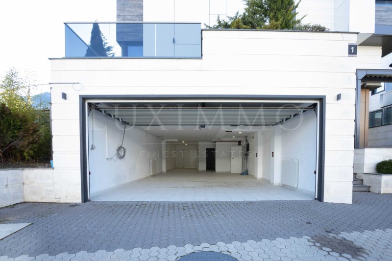 Към имота има надземен гараж, в който може да се паркират до 4 коли, киносалон/фитнес, стая за персонал (сервизно помещение) с топла връзка към останалата част на къщата посредством стълбище или ансаньора.