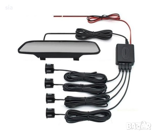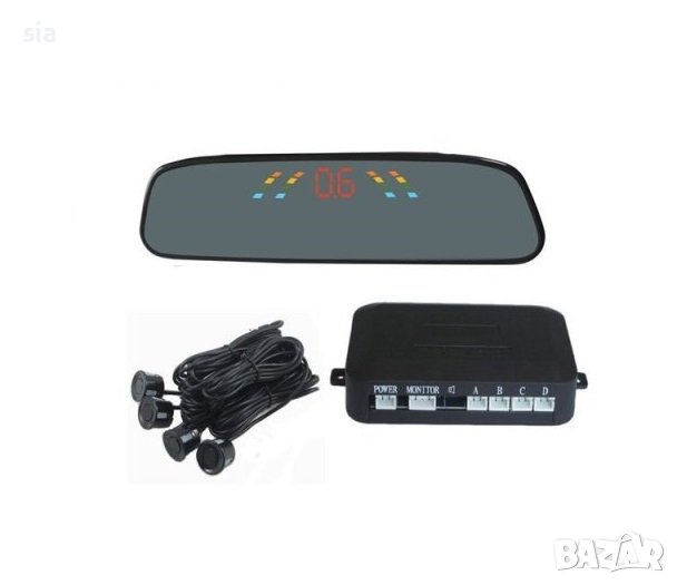 Комплектът съдържа огледало с LED дисплей с цифров дисплей, парктроник кутия, която е монтирана в задната част на автомобила, и четири сензора с максимален обхват до 2.5 m.