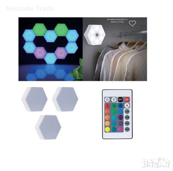 Комплект 3 бр. Стенни LED лампи Mercado Trade с дистанционно управление с ON/OFF и избор от различни цветове.