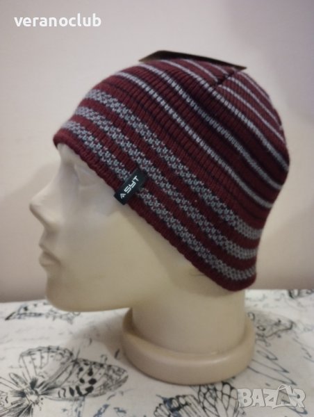 Шапката е в гамата на цвят бордо.