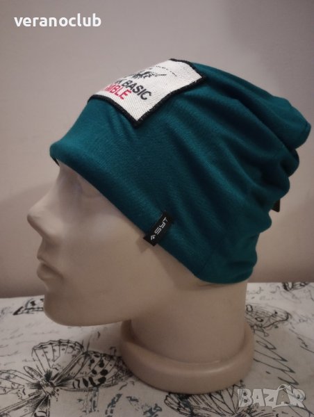 Спортна фина двойна памучна шапка в Синьо-зелен цвят.