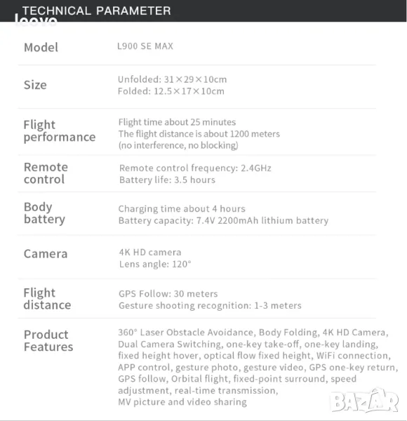 Дрон L900 SE MAX 4K, лазерен сензор, 3 батерии + кейс