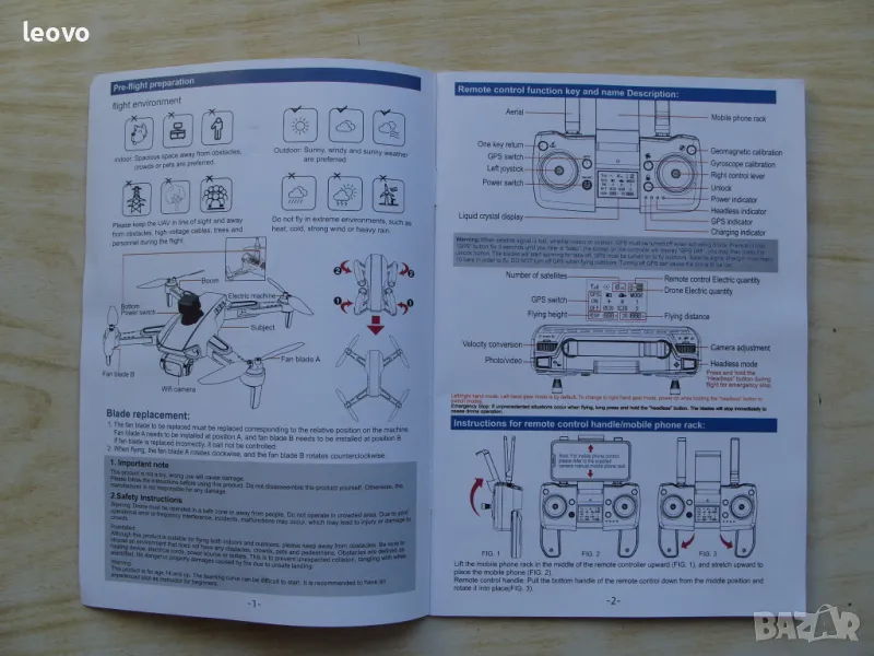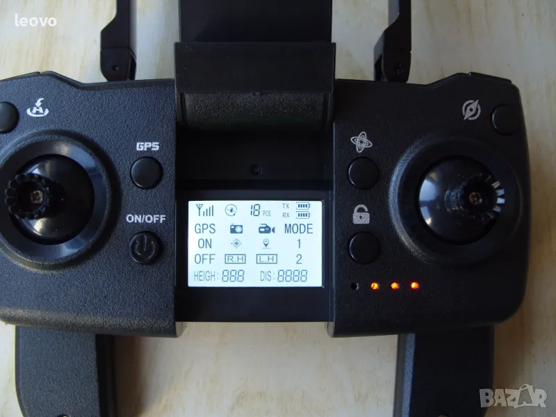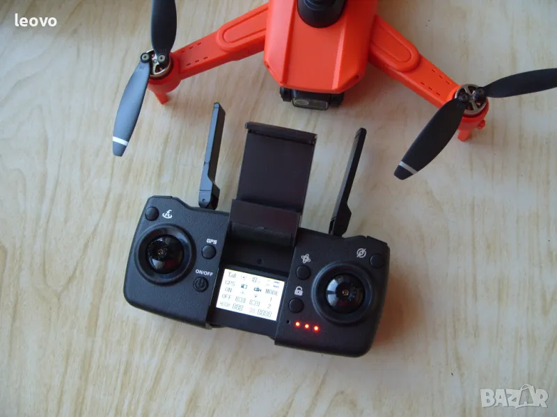 Дистанционното управление на дрона е с опция за закрепване на смартфона и ви позволява да наблюдавате от разстояние какво предава дронът чрез своята камера.