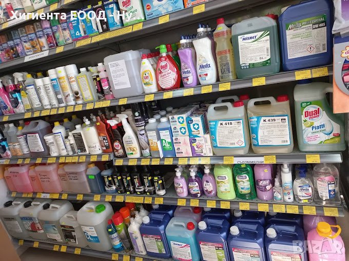 Аксесоари и консумативи за почистване – метли, мопове за сухо и мокро почистване, чували за смет, микрофибърни кърпи, гъби, четки и др.;
