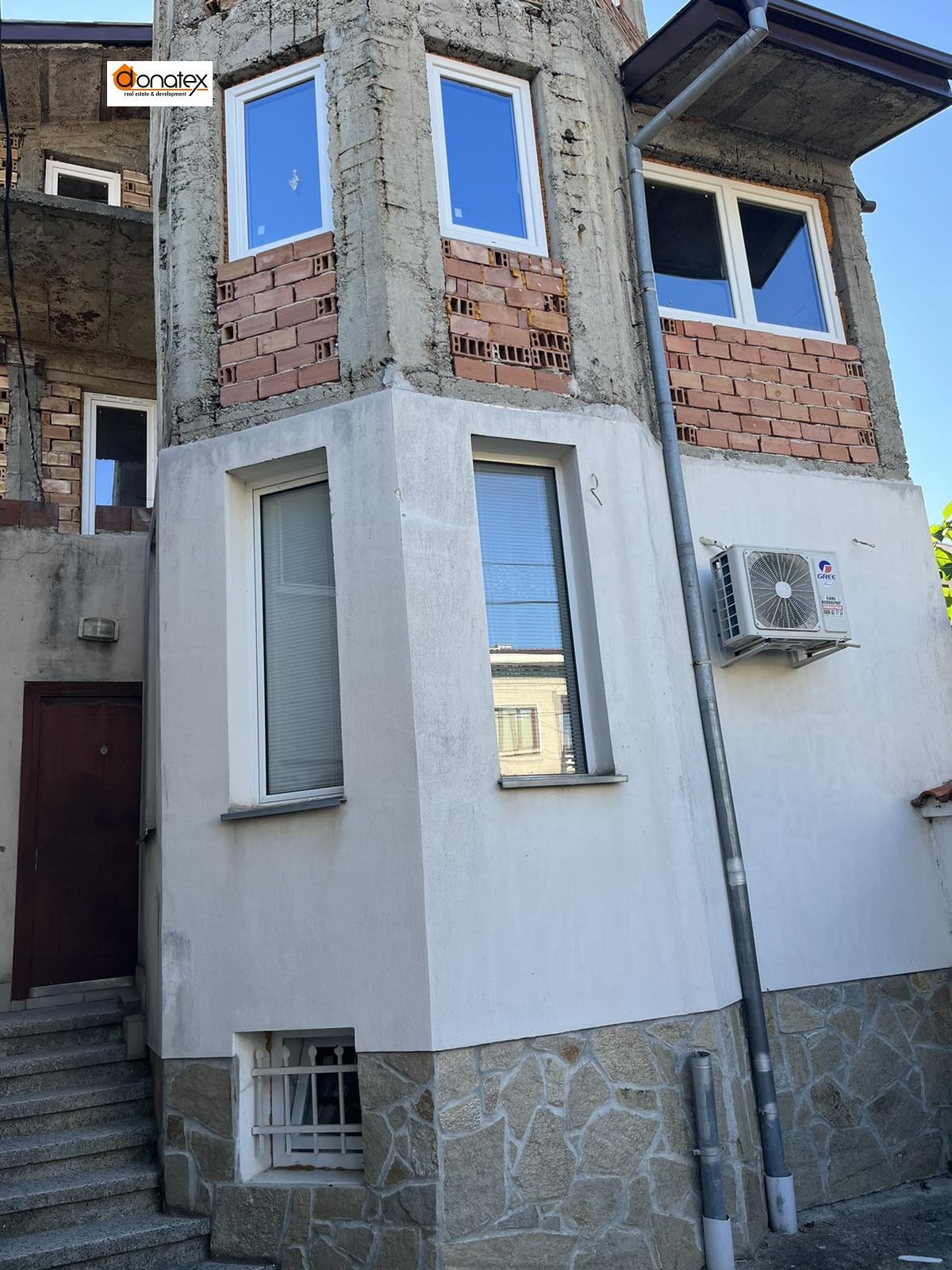 Предлагаме за продажба къща с РЗП 380 кв.м, на четири етажа, състоящи се от сутерен и два жилищни етажа, и мансарда. В сутерена са разположени вестибюл, три стаи, килер и санитарен възел, на първият жилищен етаж има кухненски бокс с трапезария и голяма всекидневна, една спалня, баня и тоалетна. На вторият са ситуирани кухненски бокс с трапезария и всекидневна, две спални, две тераси, баня и тоалетна /отделени/. В мансардата са разположени кухненски бокс с всекидневна, една спалня, тераса, баня и тоалетна. По проект етажите са свързани с вътрешно стълбище помежду си, но има втори вход, от който вторият етаж и мансардата имат възможност да се отделят.