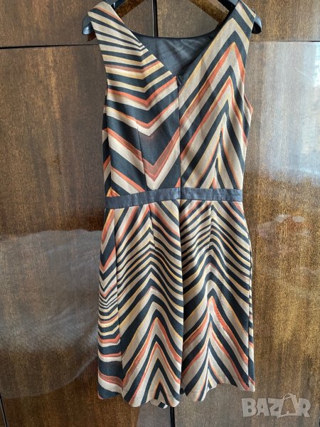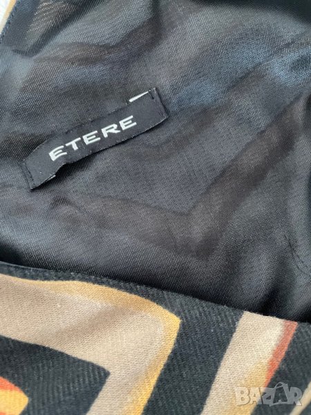 Дамска рокля ЕТЕРЕ - S/M размер- без ръкав, в интересен принт и кожена лента на талията. Носена е 2-3 пъти.
