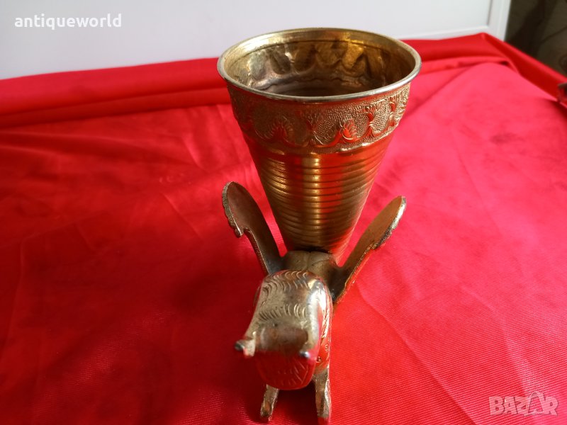 Много Красива Рядка Стара ПЕРСИЙСКА Ритонна Чаша/ваза ,Крилат Бик с Позлата , РИТОН.