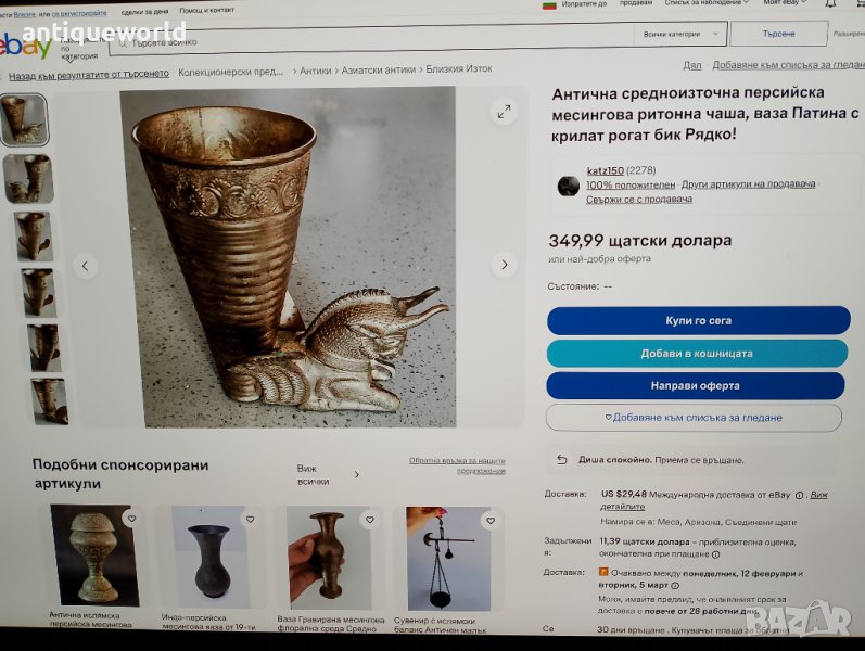Стара ПЕРСИЙСКА Ритонна Чаша с Позлата , РИТОН