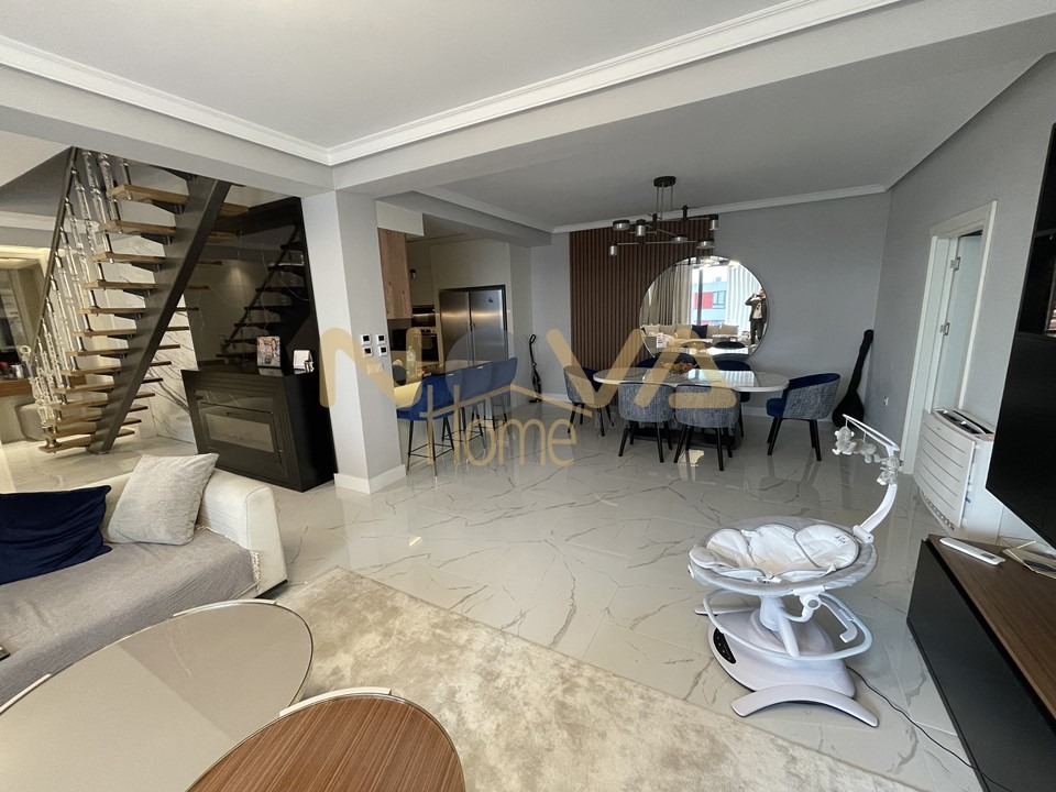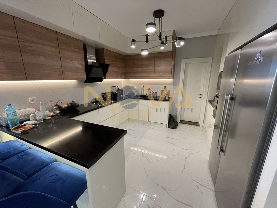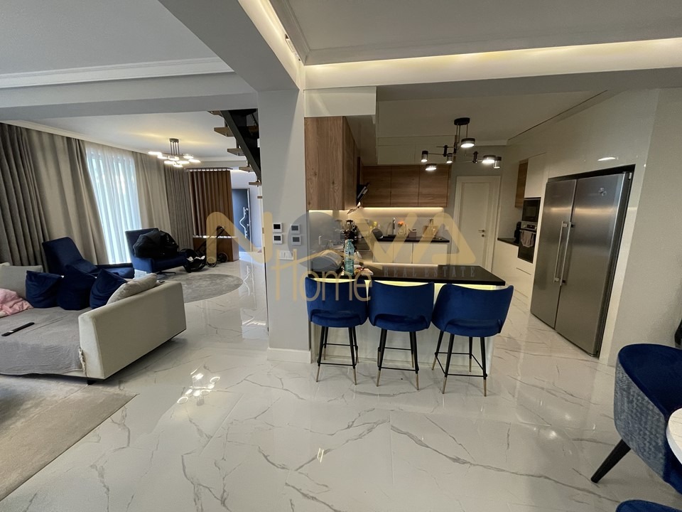 На първи етаж 122 кв.м. са разположени просторен дневен тракт с кухненски кът с веранда към него, спалня с гардеробна, баня с тоалетна и перално помещение.