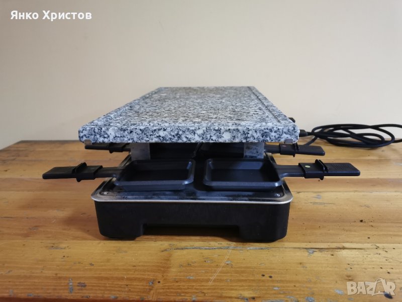 включително 8 тигана за раклет, незалепващо покритие улеснява премахването на гратинираните съставки и гарантира лесно почистване