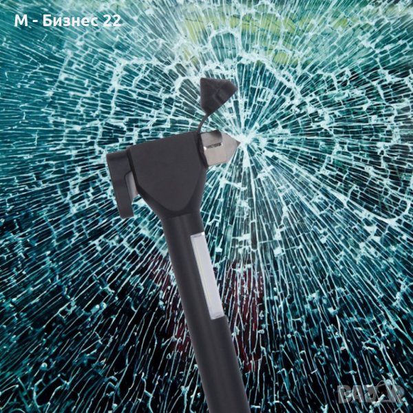 Служи за бързо счупване на стъкло на автомобил при аварийни ситуации. Чукът има фенерче с LED светлина и магнит, работи с батерии 2хААА.