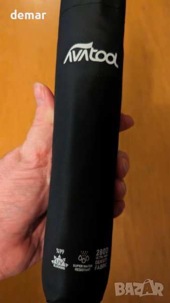 Avatool Малък лек сгъваем чадър, черен, ветроустойчив, водоотблъскващ, бързосъхнещ
