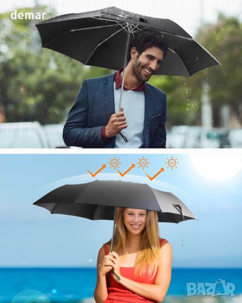 Чадърът Ultra Water Repellent Technology включва авангардни тъкани Sheltex с водоустойчив рейтинг SGS 5, което позволява мигновено изсъхване и отблъскване на дъжд като лотосов лист. Осигурява превъзходна защита срещу UV лъчи с 50+ UPF рейтинг, блокирайки 99% от UV и намалявайки температурите с 6°C отдолу. Изработен в съответствие с индустриалните стандарти с "280D" ултра-висока плътност, той остава водоустойчив и устойчив на UV лъчи, чадъри с дълготрайно покритие. Лек само с 248 g и здрав с конструкция от фибростъкло, той издържа на различни метеорологични условия и се възстановява от обръщане отвътре навън. Този компактен, лесен за пренасяне чадър е с размери 11 инча, изсъхва с едно разклащане и се побира без усилие в чанти, което го прави идеален за ежедневна употреба и дейности на открито.