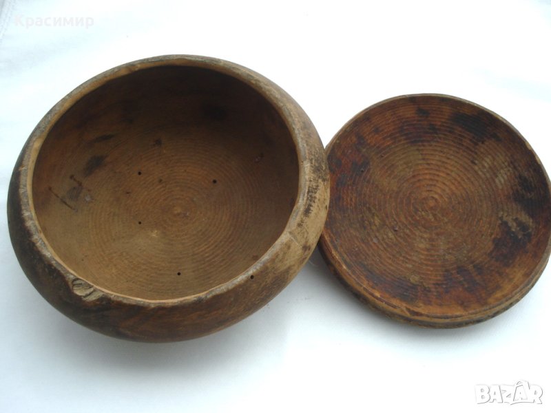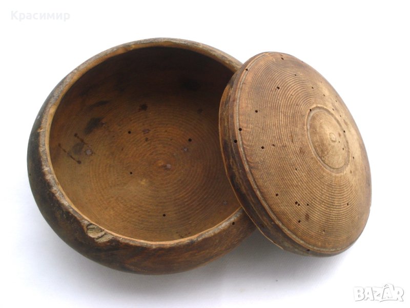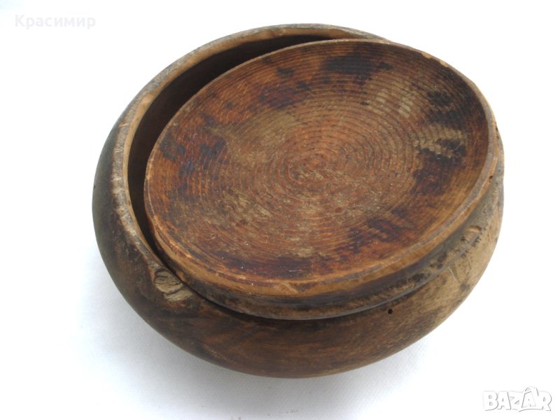 СТАРА ДЪРВЕНА КУПА С КАПАК - СОЛНИЦА