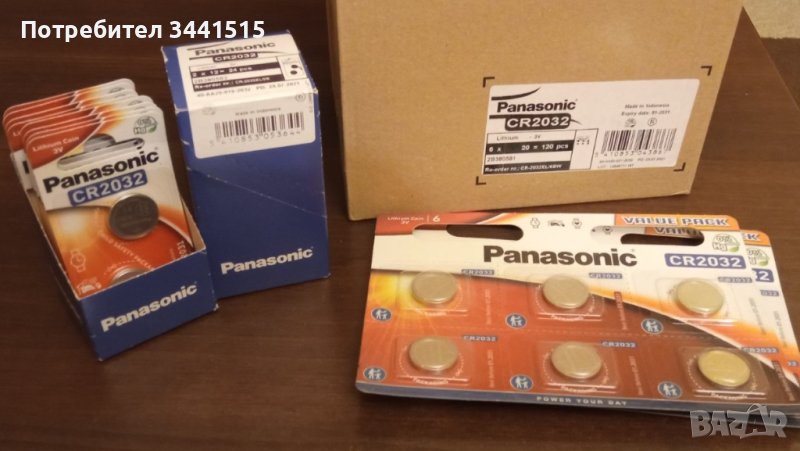 Литиева батерия Panasonic Lithium CR2032, 2032, DL2032 3V → Обява 43765740
